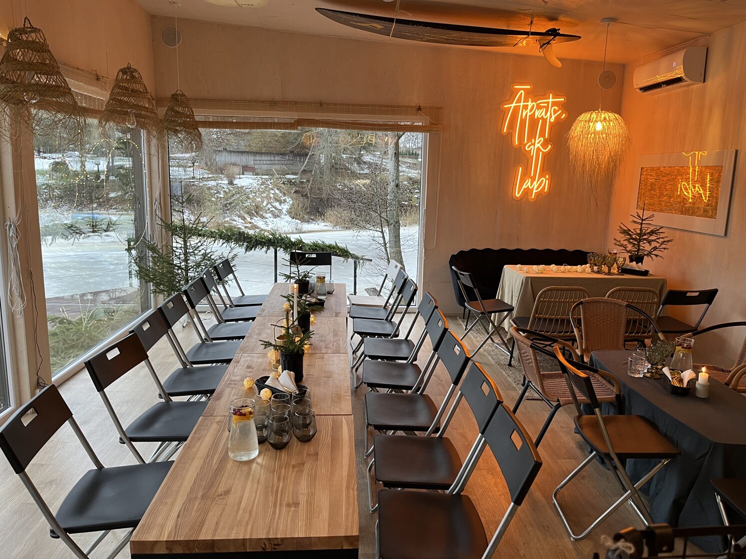 Telpa pasākumiem piemērota līdz 25 cilvēku lielam skaitam. Par detalizētāku info, lūdzam sazināties ar mums.